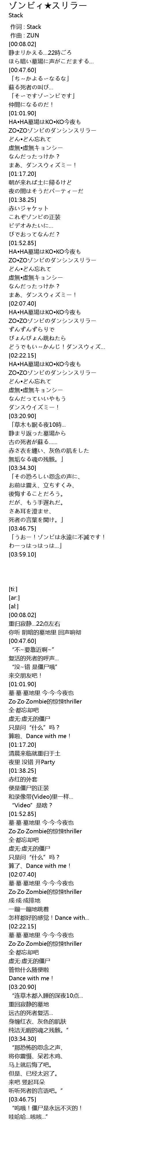 | [02:11.05] | ZO•ZOゾンビのダンシンスリラー |