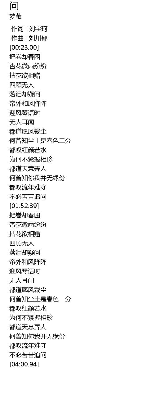 | [03:53.98] | bù bì kǔ kǔ zhuī wèn |