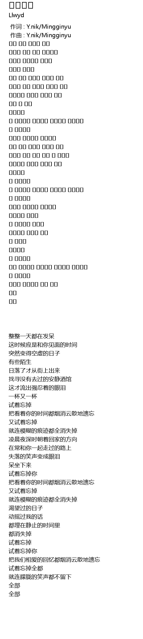 | [00:00.000] | 作词 : Y.nik/Mingginyu |