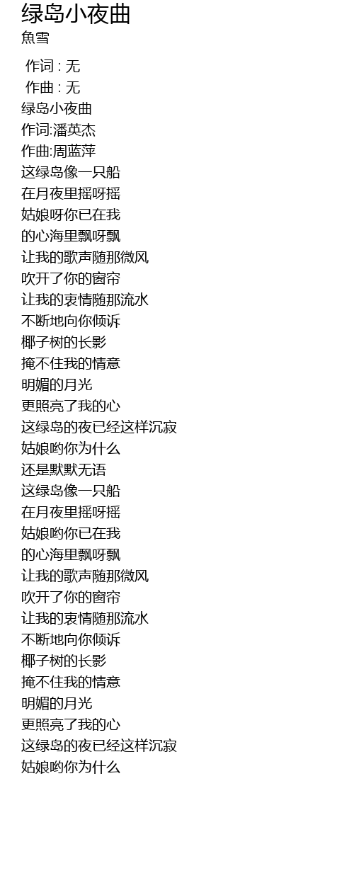 | [00:05.444] | 绿岛小夜曲 |