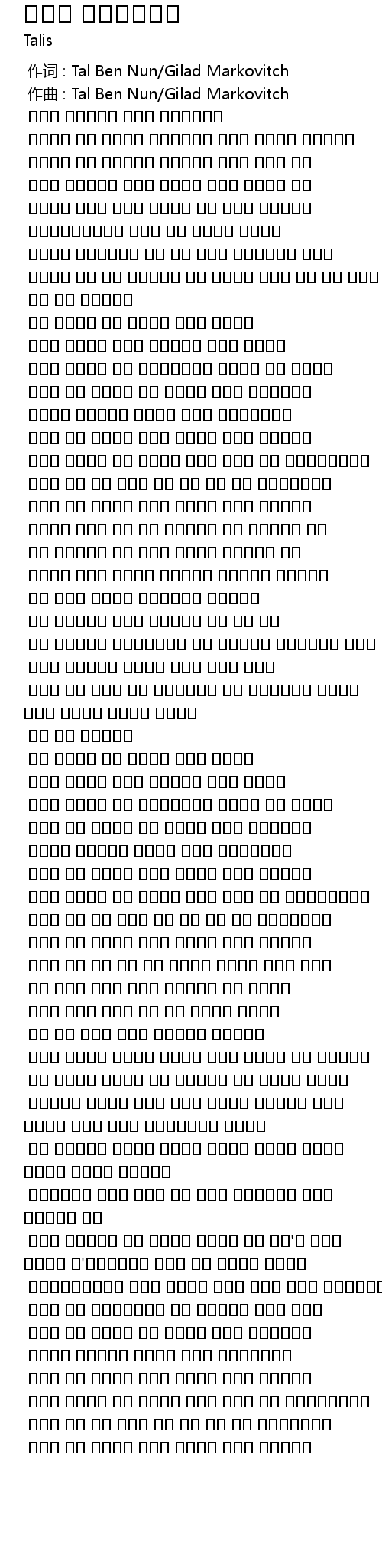作词 : Tal Ben Nun/Gilad Markovitch |