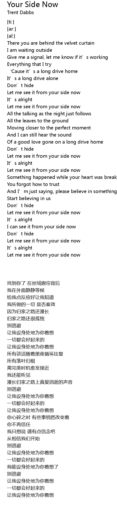 | Song | Your Side Now |