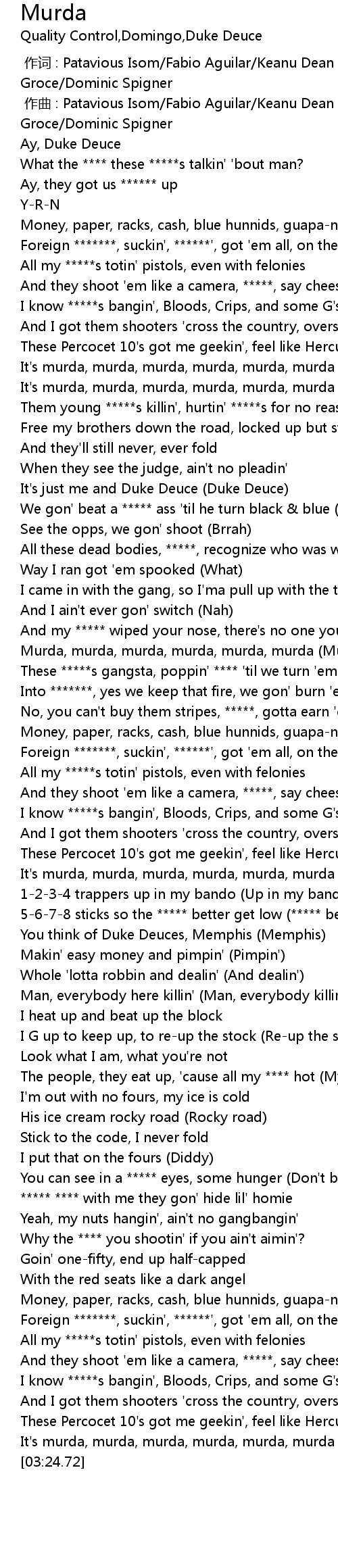| [01:18.59] | Murda, murda, murda, murda, murda, murda (Murda) |