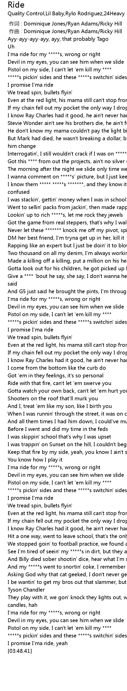| [00:22.56] | I'ma ride for my *****s, wrong or right |