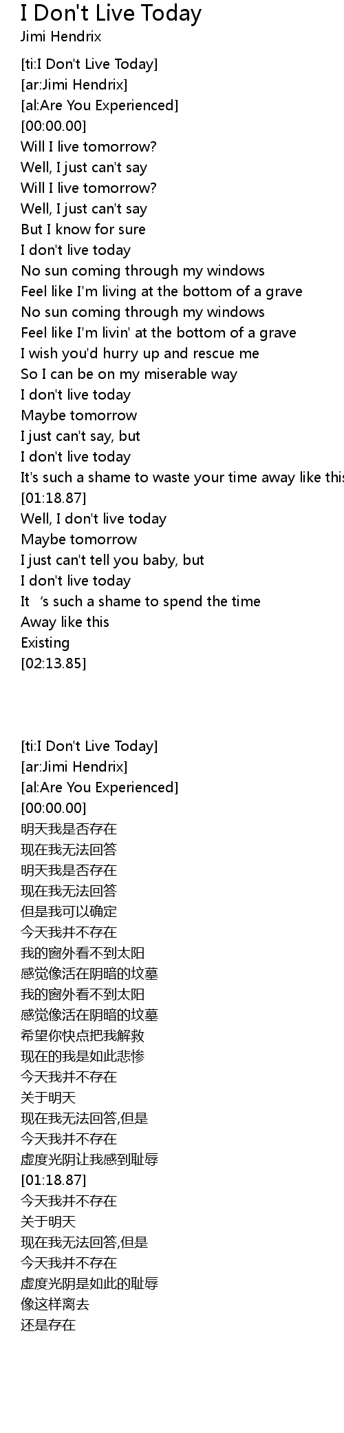 | [ti:I Don't Live Today] | |