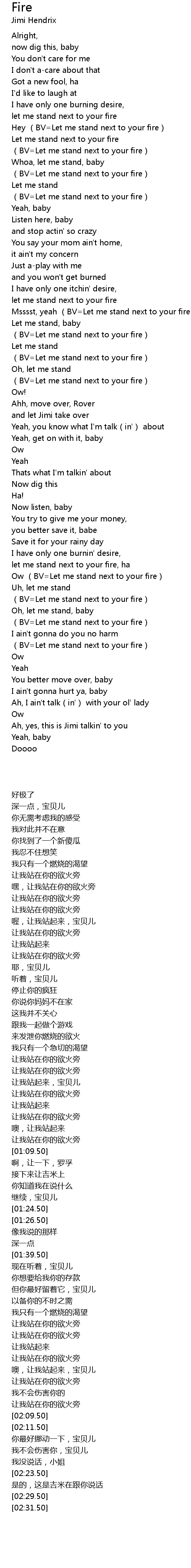 | [01:57.50] | Ow (BV=Let me stand next to your fire) |