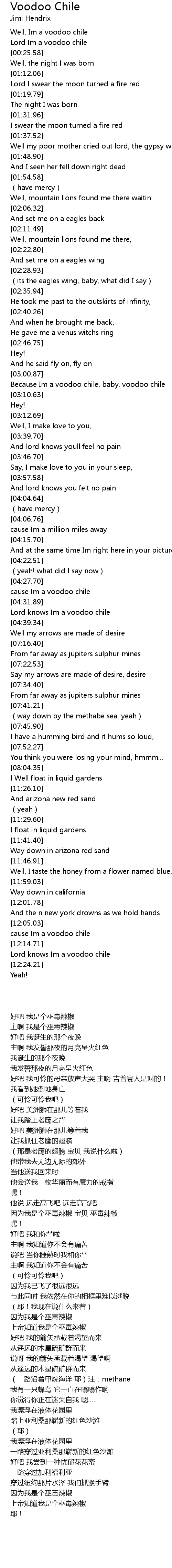 | [03:02.19] | Because Im a voodoo chile, baby, voodoo chile |