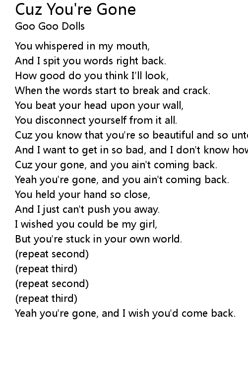 Cuz your gone, and you ain't coming back. |