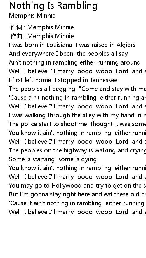 | [00:00.00] | 作词 : Memphis Minnie |