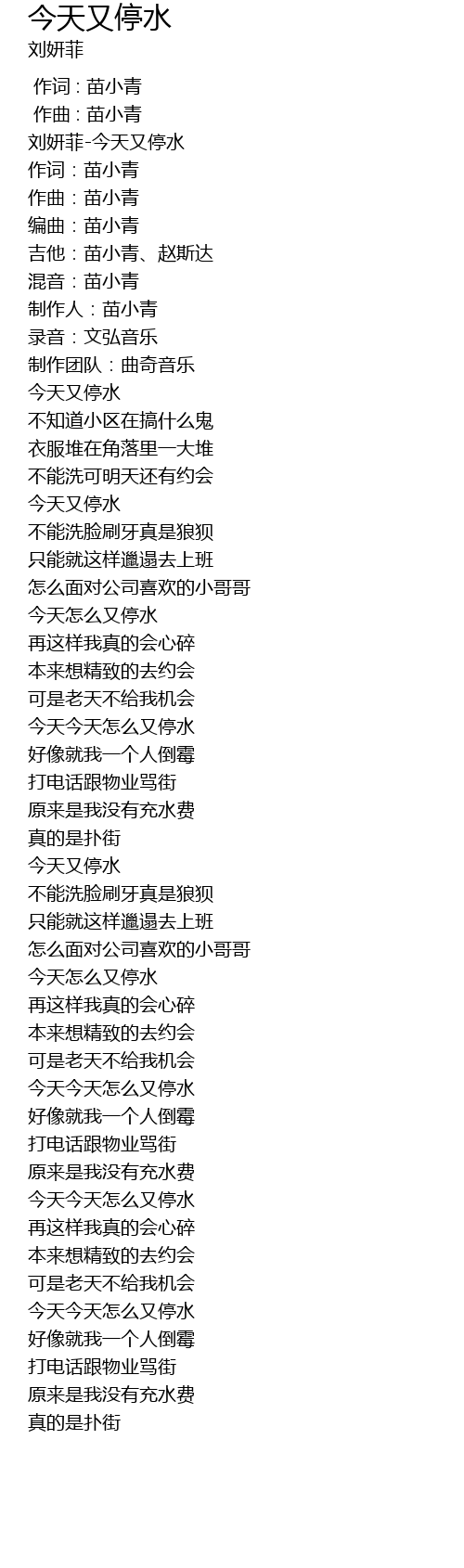 | [00:00.00] | 刘妍菲-今天又停水 |