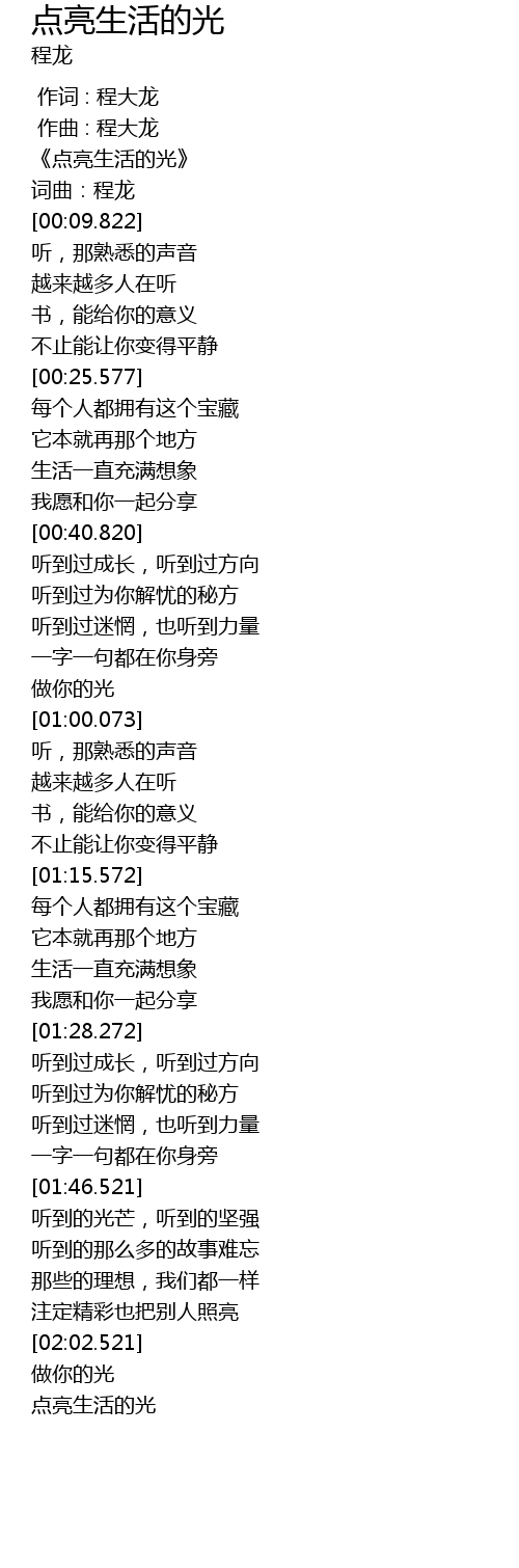 | [00:02.826] | 《点亮生活的光》 |