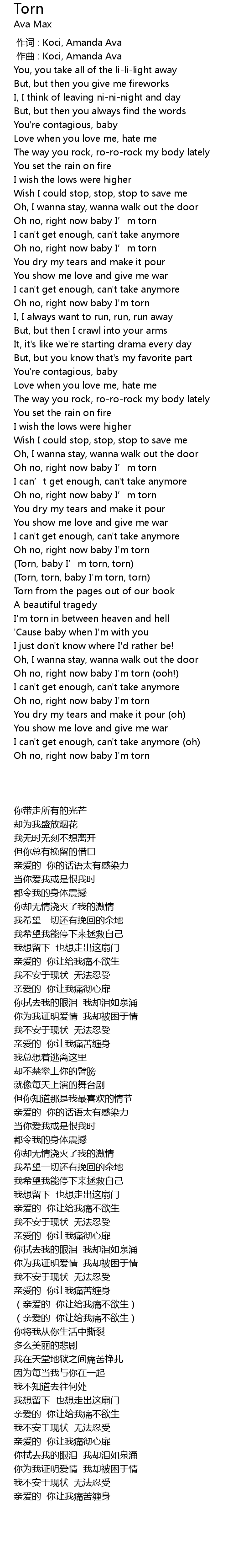 | [02:18.82] | (Torn, torn, baby I'm torn, torn) |