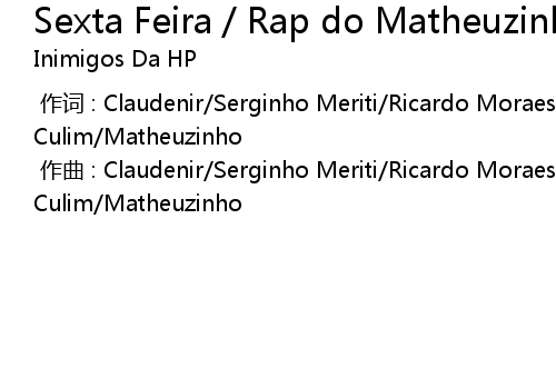 | [00:00.00-1] | 作曲 : Claudenir/Serginho Meriti/Ricardo Moraes/Alex Culim/Matheuzinho |