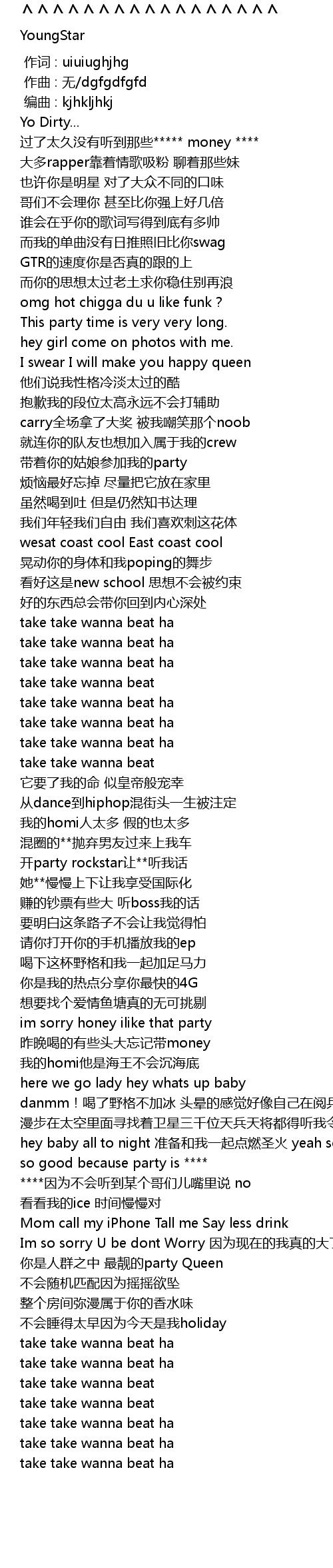 | [02:20.690] | so good because party is **** ****因为不会听到某个哥们儿嘴里说 no |