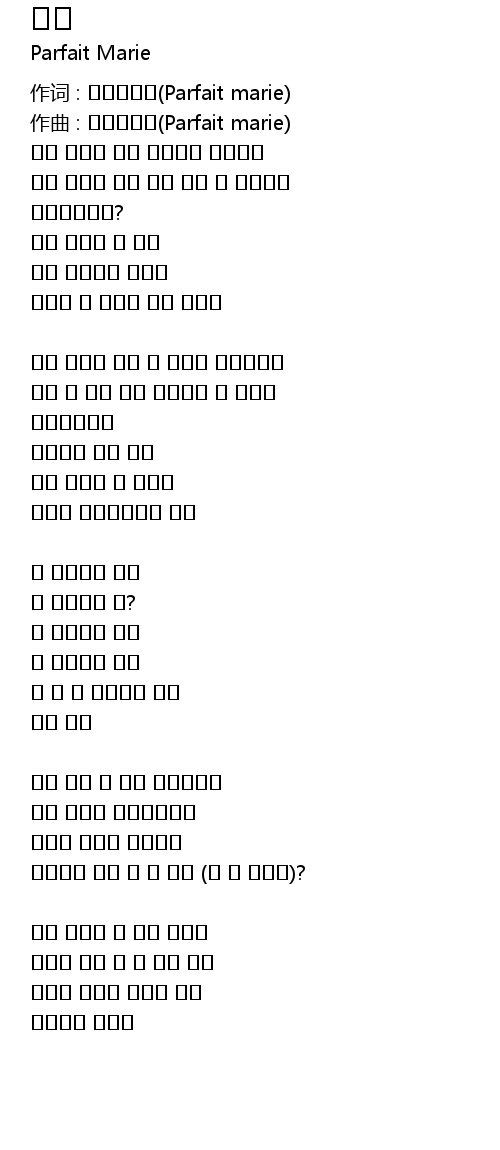 | 作词 : 파르페마리(Parfait marie) | |