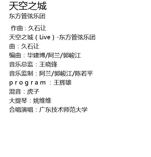| [00:00.00] | 天空之城(Live)-东方管弦乐团 |
