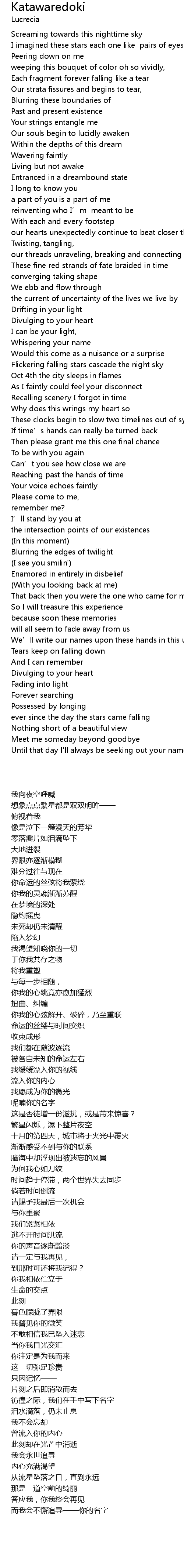 | [02:43.692] | Flickering falling stars cascade the night sky |