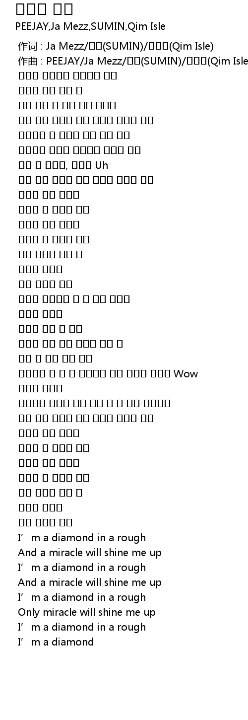 | [00:01.000] | zuo qu : PEEJAY Ja Mezz SUMIN Qim Isle |