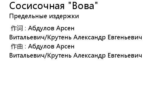 | [00:00.00-1] | 作曲 : Абдулов Арсен Витальевич/Крутень Александр Евгеньевич |