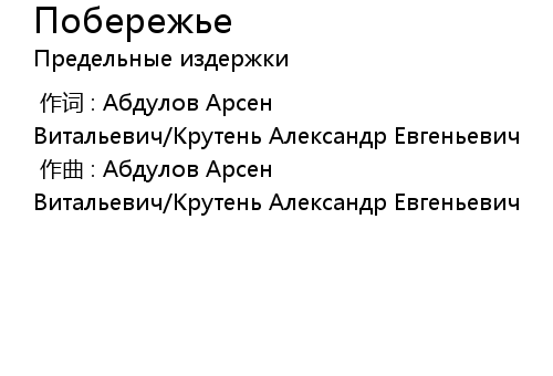 | [00:00.00-1] | 作曲 : Абдулов Арсен Витальевич/Крутень Александр Евгеньевич |