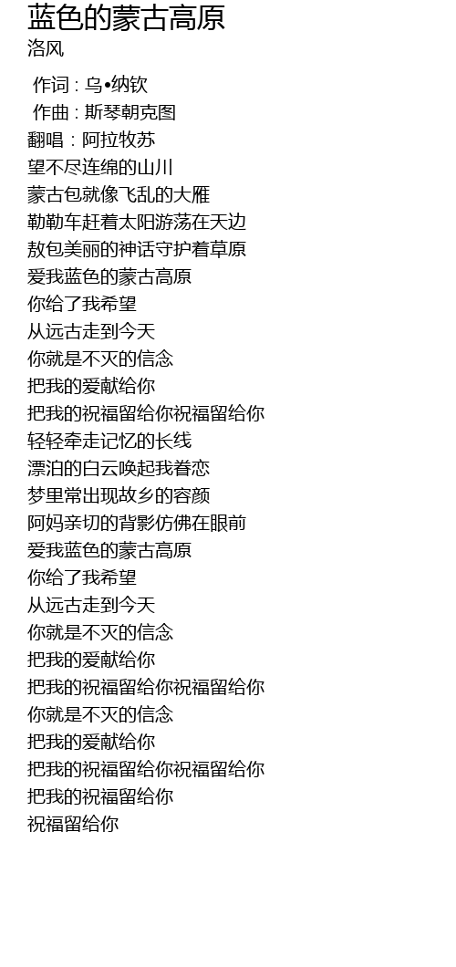 | [01:30.847] | 爱我蓝色的蒙古高原 |
