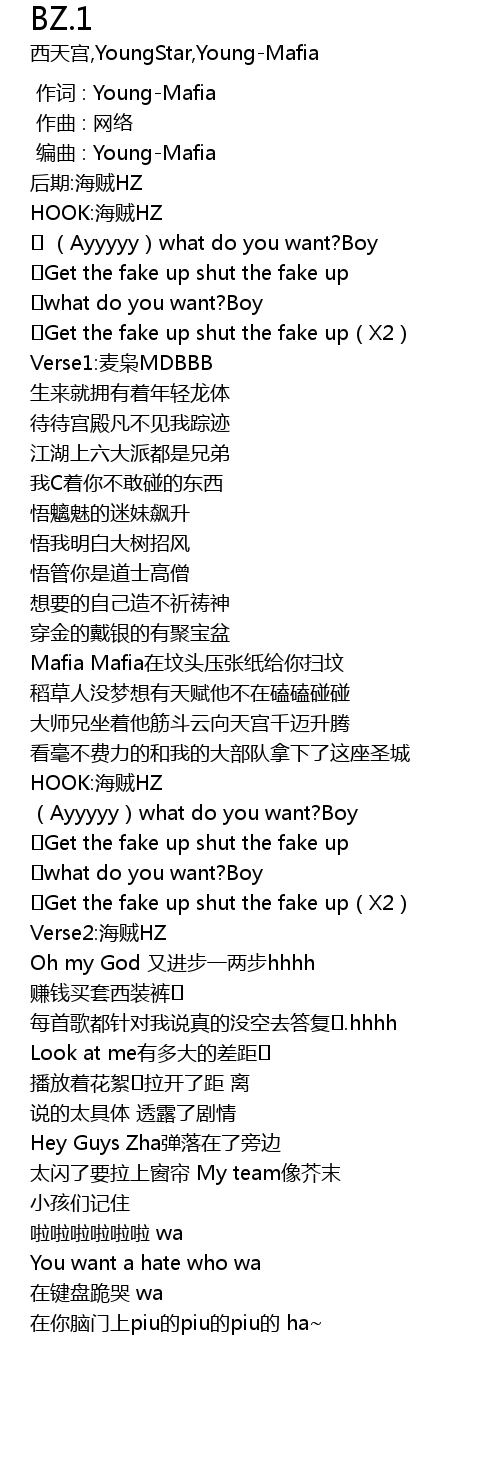 | [01:09.815] | Get the fake up shut the fake up(X2) |