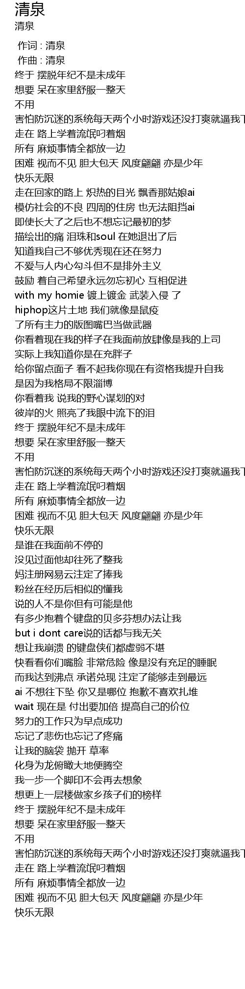 | [00:00.00] | 作词 : 清泉 |