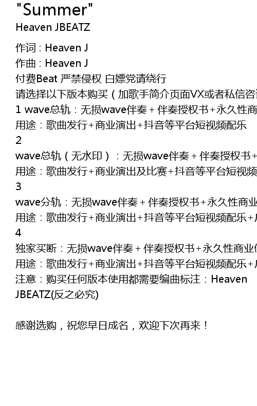 | 注意:购买任何版本使用都需要编曲标注:Heaven JBEATZ(反之必究) | |