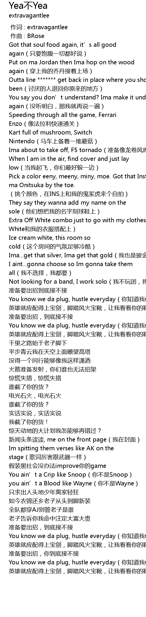 | [01:14.428] | You know we da plug, hustle everyday ni zhi dao wo men zui sha |
