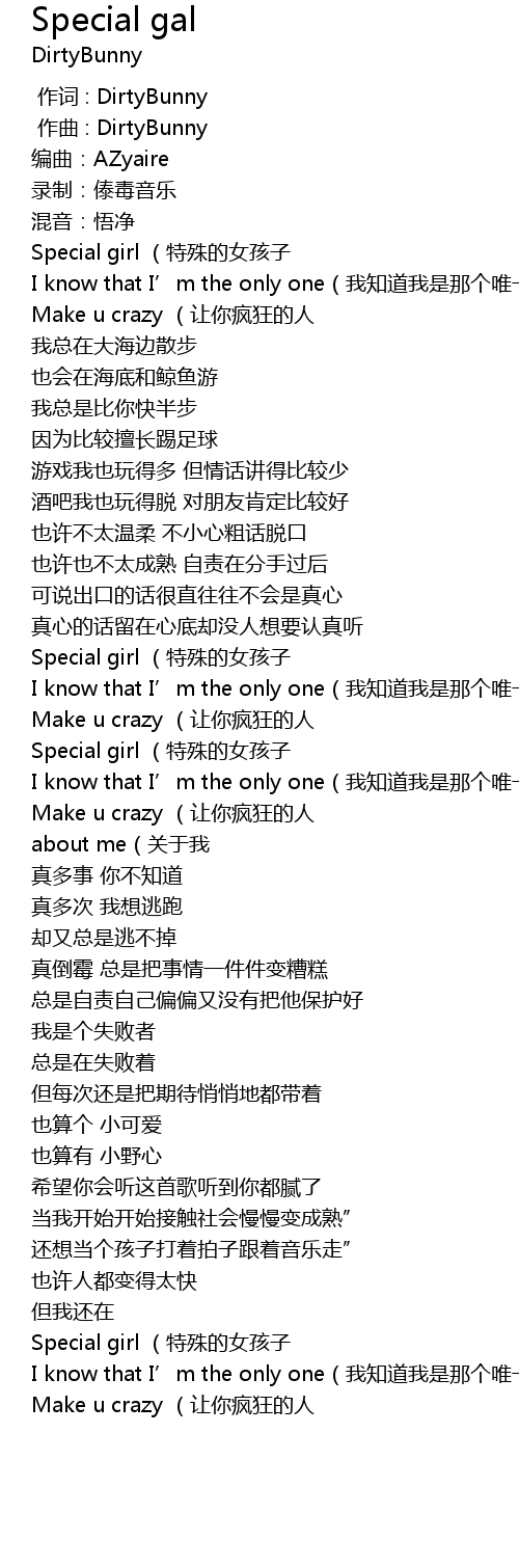 | [02:23.125] | Special girl tè shū de nǚ hái zi |