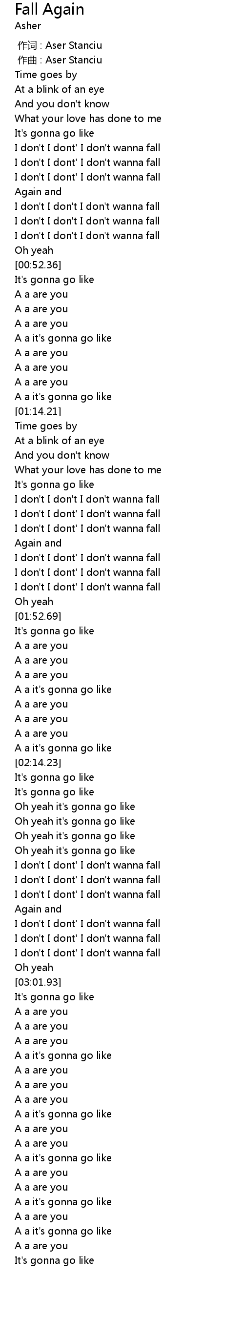 | [00:43.57] | I don't I don't I don't wanna fall |