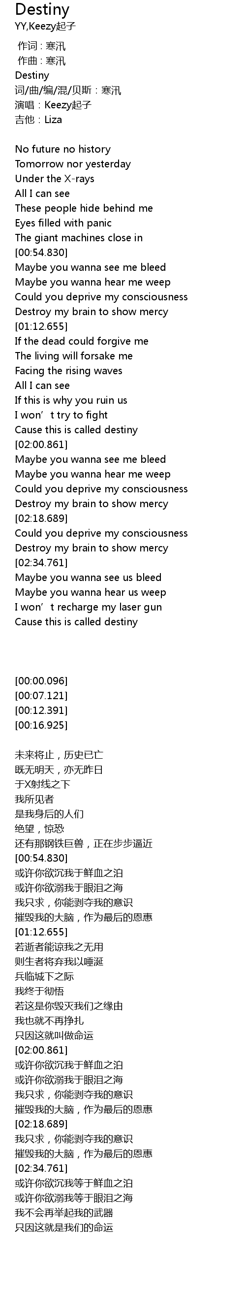 | [00:12.391] | yǎn chàng: Keezy qǐ zǐ |
