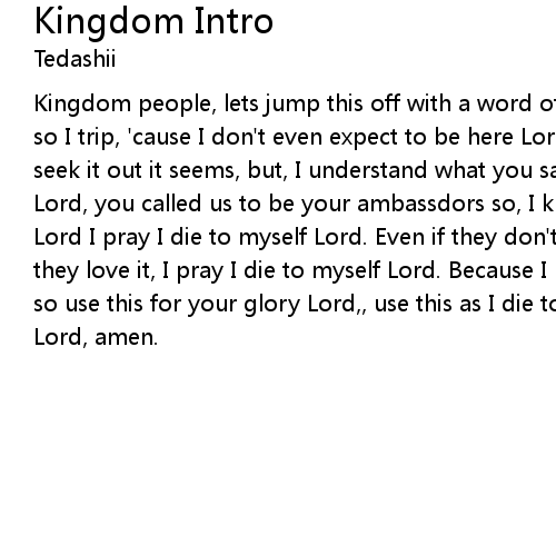 Kingdom people, lets jump this off with a word of prayer. Lord, its your boy... so I trip, 'cause I don't even expect to be here Lord. Honestly I didn't even seek it out it seems, but, I understand what you said in 1 Corinthians 5:20, Lord, you called us to be your ambassdors so, I know this can glorify you. But Lord I pray I die to myself Lord. Even if they don't like it Lord. Or even if they love it, I pray I die to myself Lord. Because I know, this glorifies you, so use this for your glory Lord,, use this as I die to myself, in Jesus name Lord, amen. |