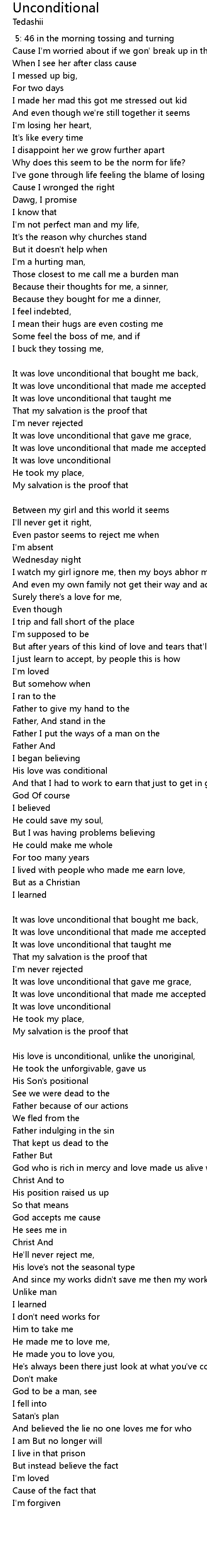 His love is unconditional, unlike the unoriginal, |