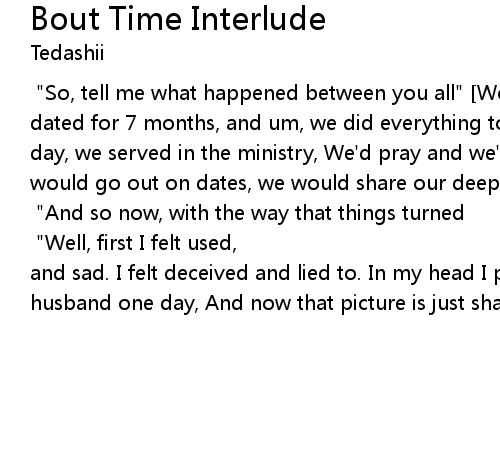 [Man/Pastor:] "So, tell me what happened between you all" [Woman:] "Well, we dated for 7 months, and um, we did everything together. He would call me every day, we served in the ministry, We'd pray and we'd read our Bibles together. We would go out on dates, we would share our deepest secrets. We were so, so close - he was my best friend." [Man:] "And so now, with the way that things turned out, I mean, how does that make you feel? " [Woman:] "Well, first I felt used, and sad. I felt deceived and lied to. In my head I pictured him as being my husband one day, And now that picture is just shattered. I just feel so alone."
