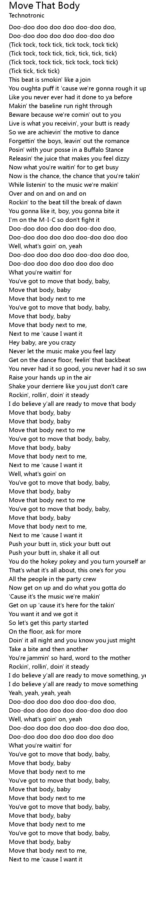 Move that body next to me, |