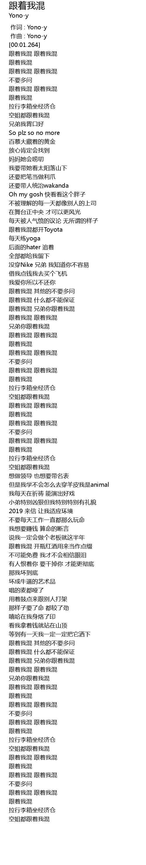 | [01:02.883] | 跟着我混 其他的不要多问 |