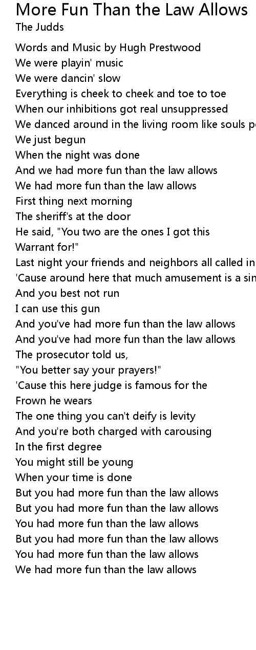 But you had more fun than the law allows |