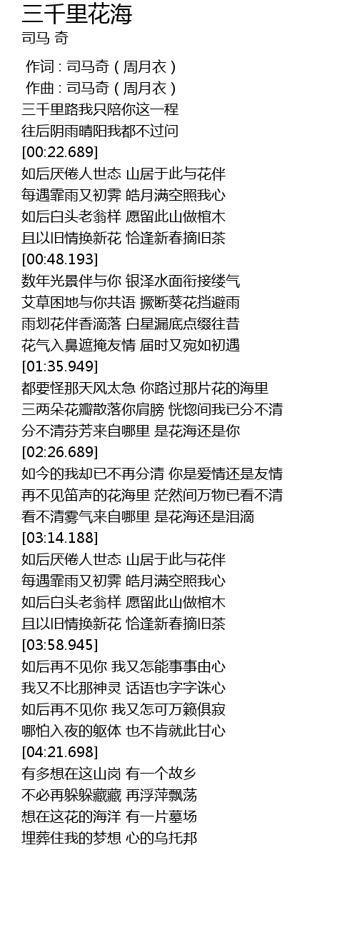| [03:36.695] | 如后厌倦人世态 山居于此与花伴 |