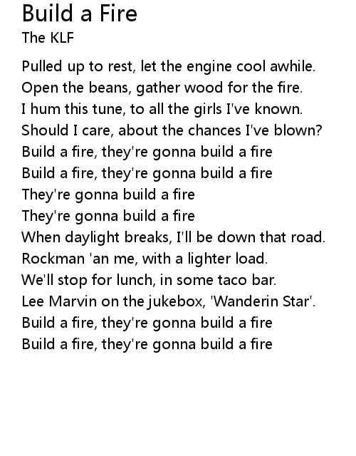 Build a fire, they're gonna build a fire |