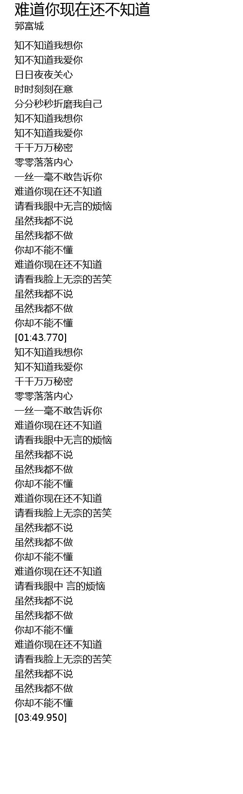 | [01:01.180] | nan dao ni xian zai hai bu zhi dao |