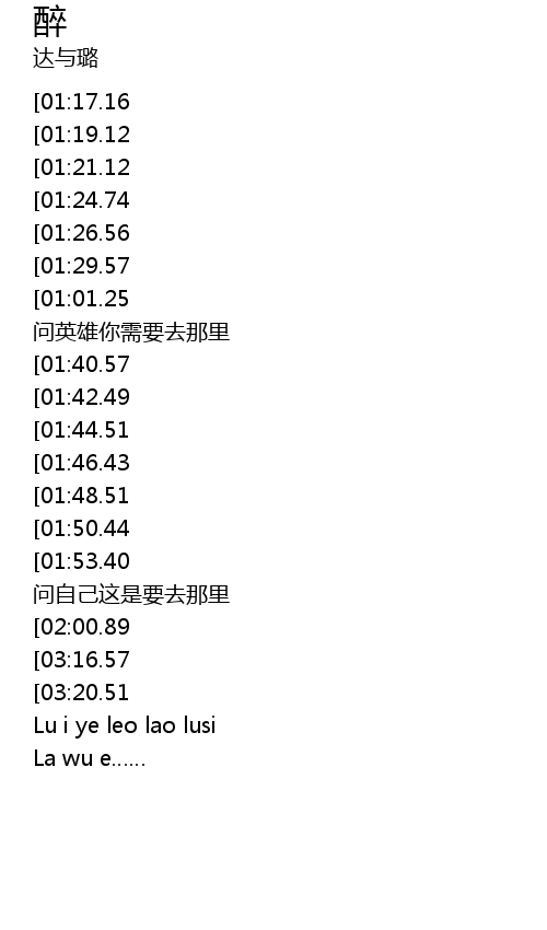 | [03:12.53][03:20.51] | La wu e leo lao lusei |