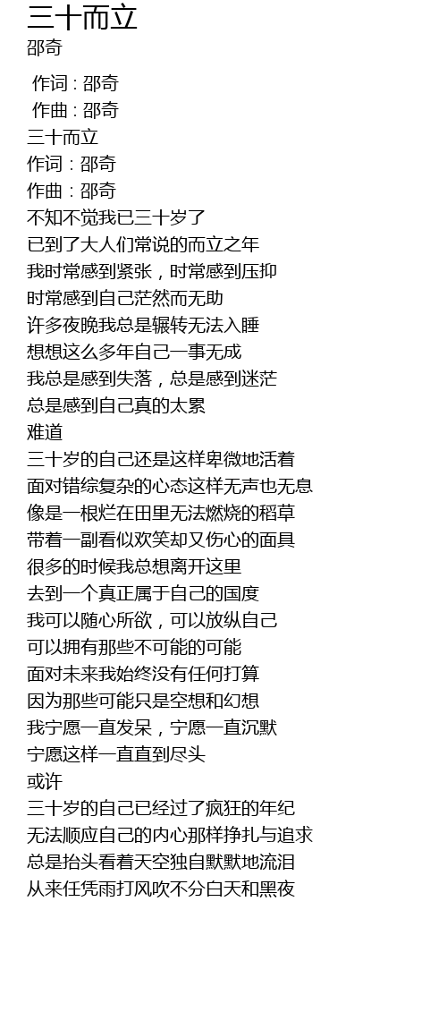 | [00:26.04] | 已到了大人们常说的而立之年 |
