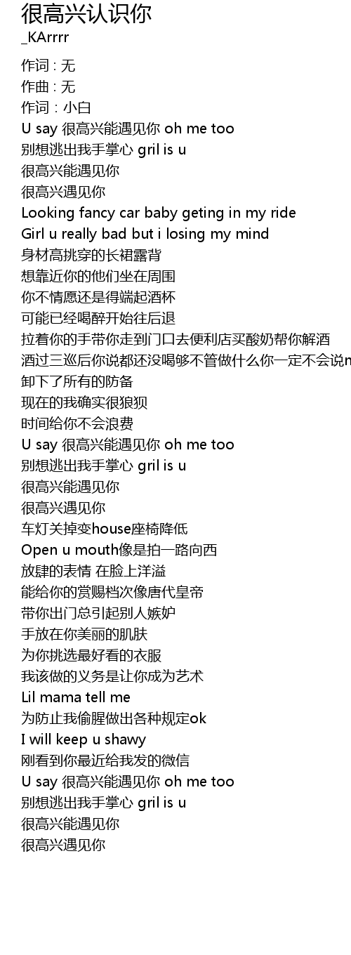 | U say hěn gāo xīng néng yù jiàn nǐ oh me too | |