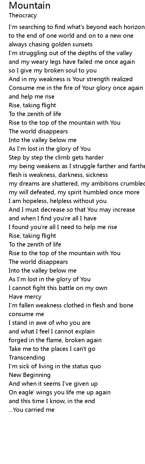 | Rise to the top of the mountain with You | |