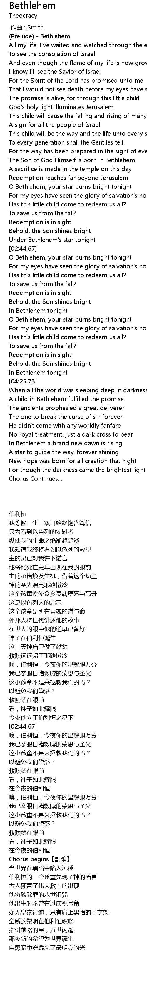 | [00:00.73] | (Prelude) - Bethlehem |
