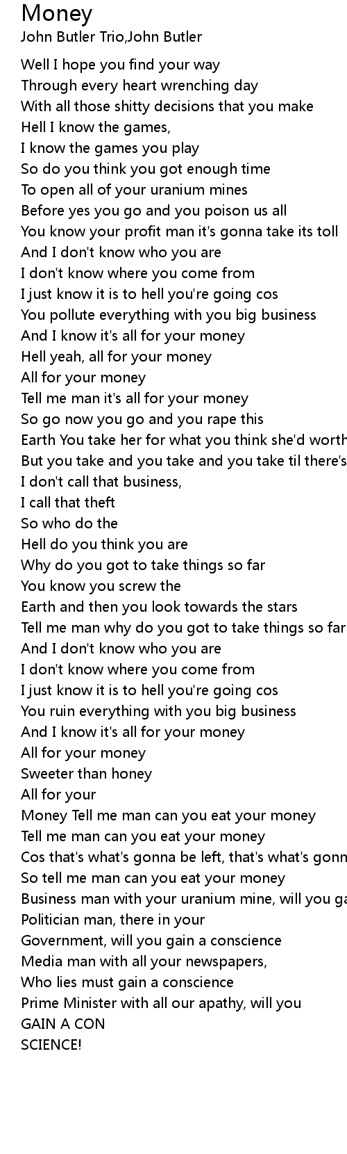 Money Tell me man can you eat your money |