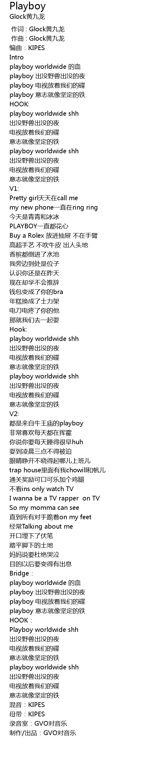 | [00:00.000] | 作词 : Glock黄九龙 |