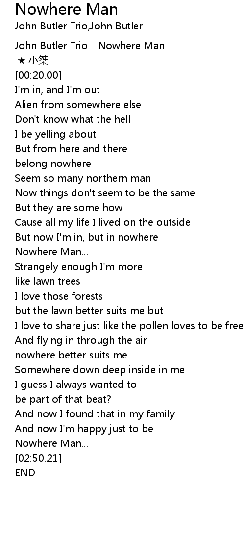 | [00:00.00] | John Butler Trio - Nowhere Man |