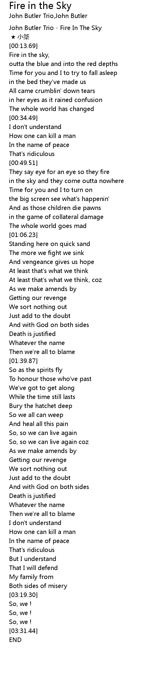 | [00:00.00] | John Butler Trio - Fire In The Sky |